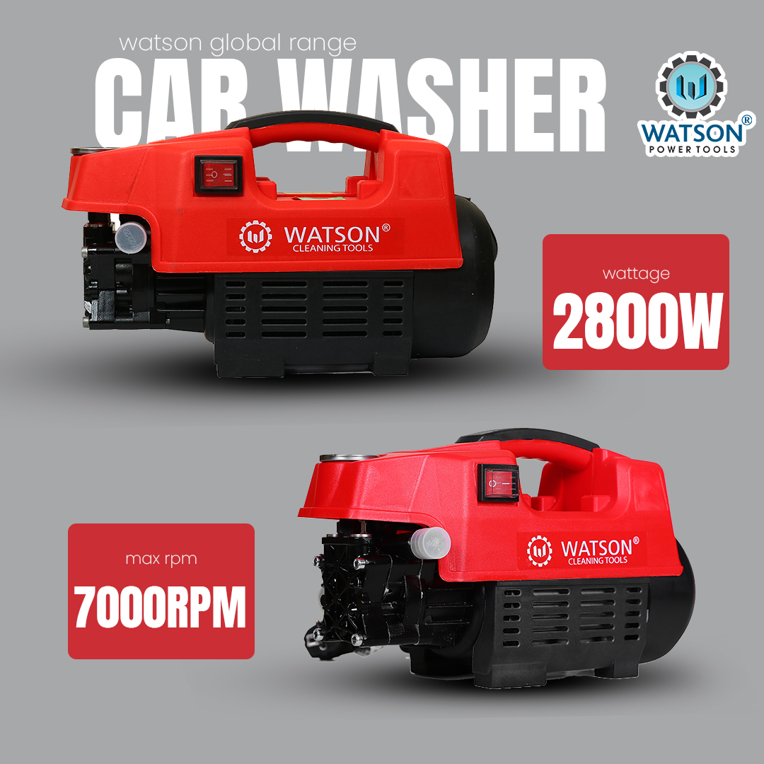 The Watson 110BAR Car Washer Machine, Model 1611, with a robust 2200Watt motor and 2800rpm speed, delivers powerful cleaning performance for vehicles and outdoor surfaces.