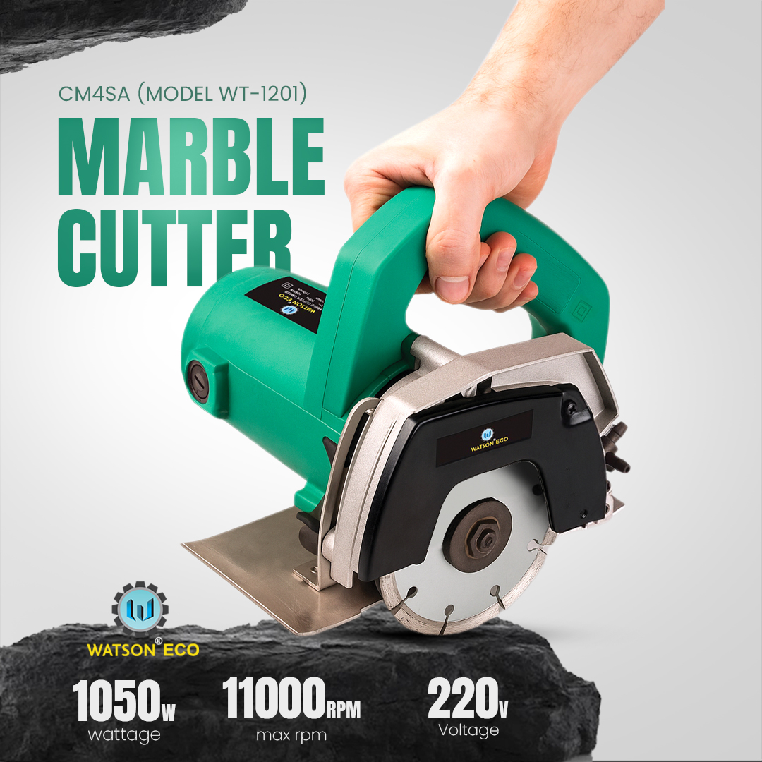 The Watson CM4SA Marble Cutter Machine, Model 1201, represents a pinnacle in cutting technology, designed for professionals and DIY enthusiasts alike who demand precision and power. Featuring a robust 1100-watt motor, this machine delivers efficient cutting performance at a No Load Speed of 11500rpm, ensuring swift and precise cuts through various materials.