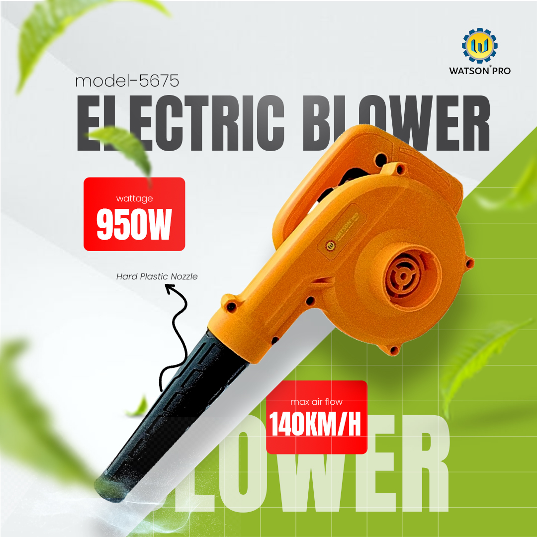 The Watson 950W Electric Blower Machine, Model 5675, offers efficient airflow at 24000rpm, ideal for cleaning debris and maintaining outdoor spaces. Designed for durability and ease of use, it’s suitable for both professional and DIY tasks.