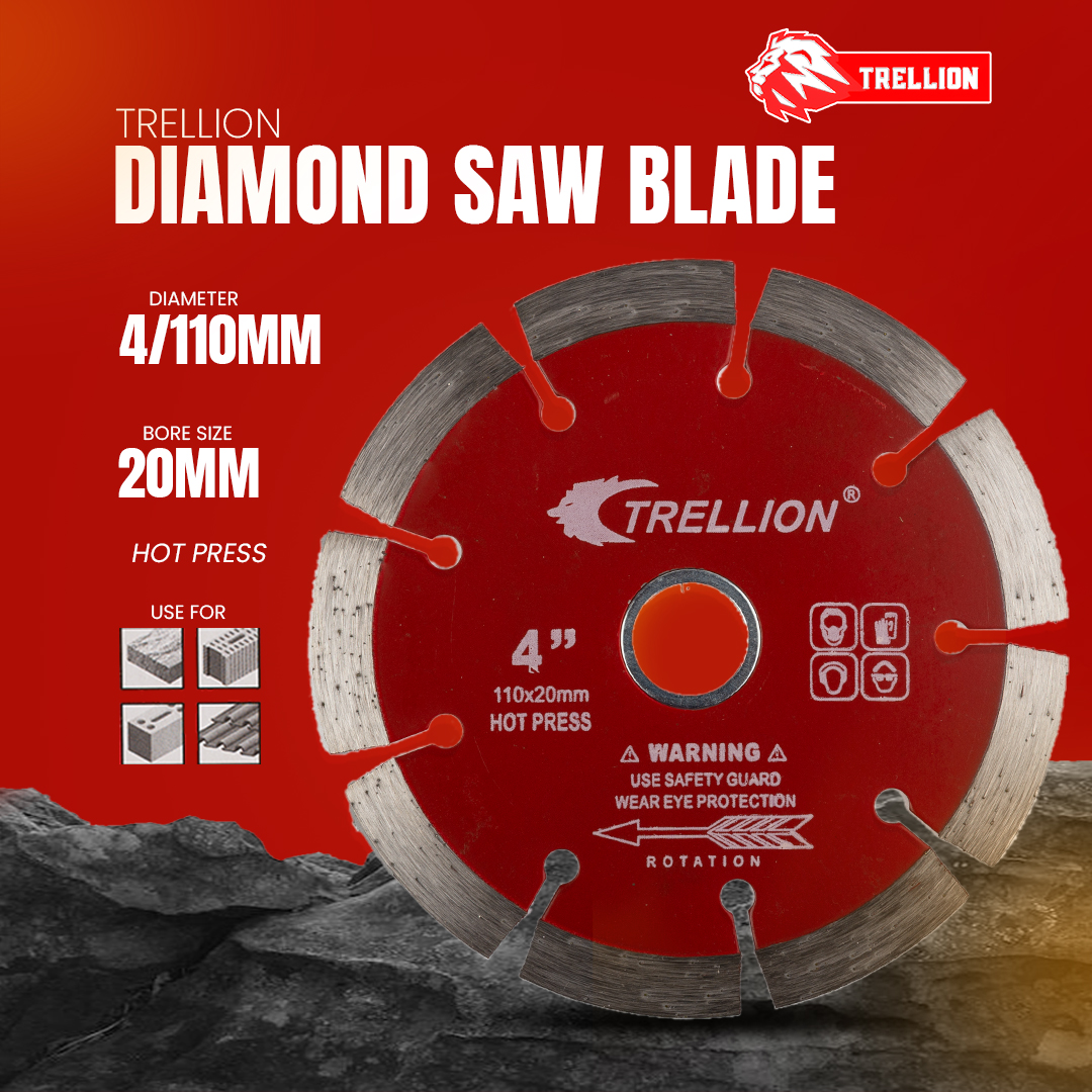 Crafted for enhanced cutting efficiency, the Trellion 4” Turbo Segmented Blade is built with high-grade diamond segments and turbo slots for faster cutting, reduced friction, and better heat dissipation. Ideal for cutting marble, granite, tile, and other masonry materials.